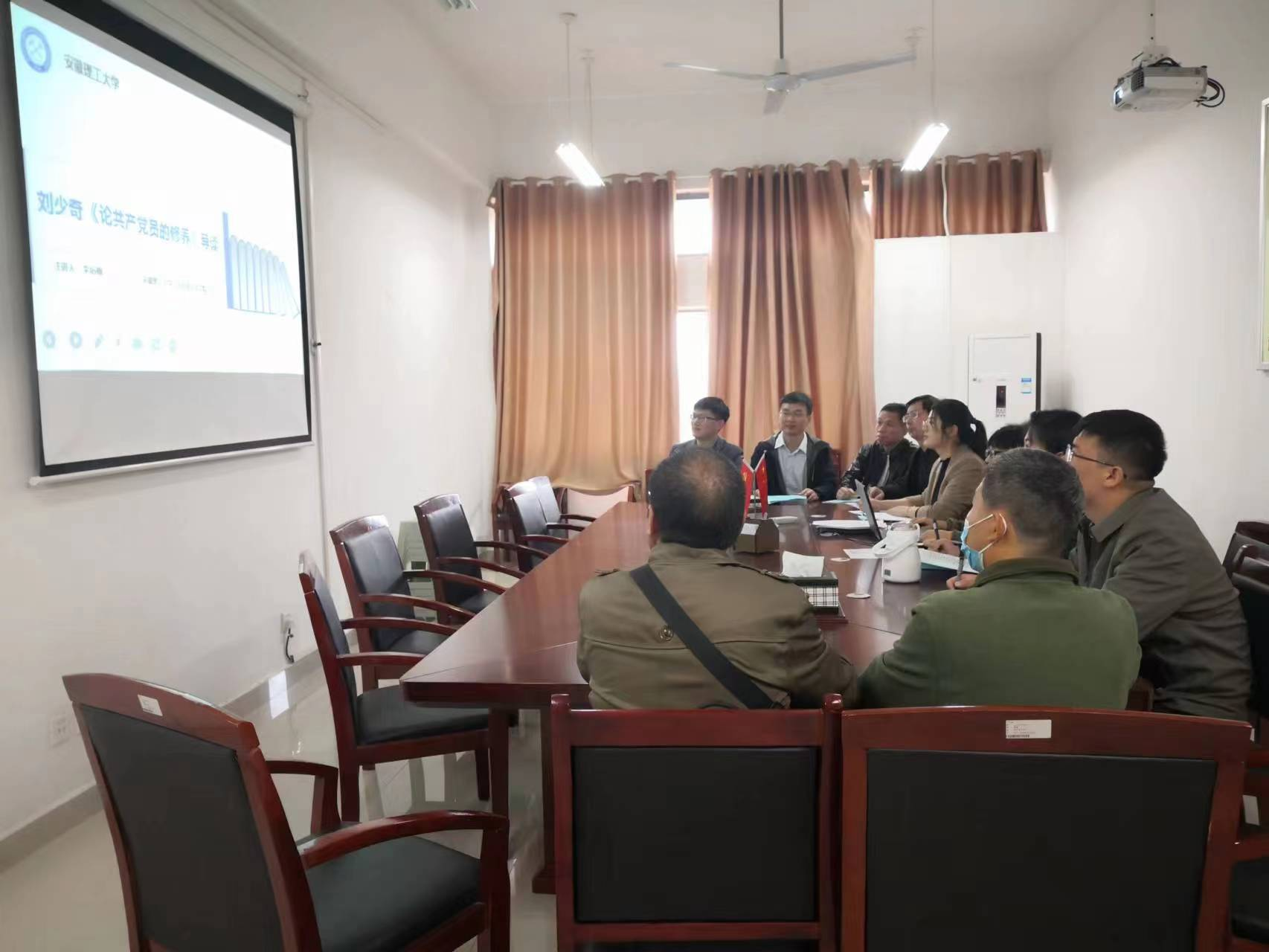 5月5日上午,为落实学习贯彻习近平新时代中国特色社会主义思想主题教育,提高教师业务水平,马克思主义基本原理教研室在崇智楼A413会议室开展第8期马克思主义经典研读活动。本期活动由李后梅副教授主讲《论共产党员的修养》,原理教研室全体教师参与学习研讨。